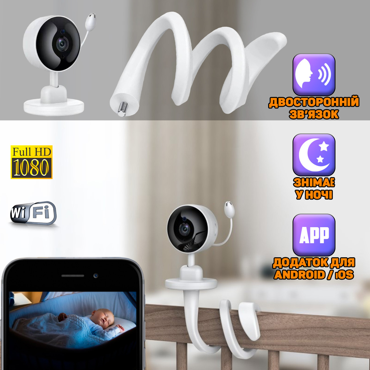 Відеоняня з датчиком руху та гнучким тримачем бездротова Wi-Fi камера відеоспостереження Camera Tuya Q16 Full HD