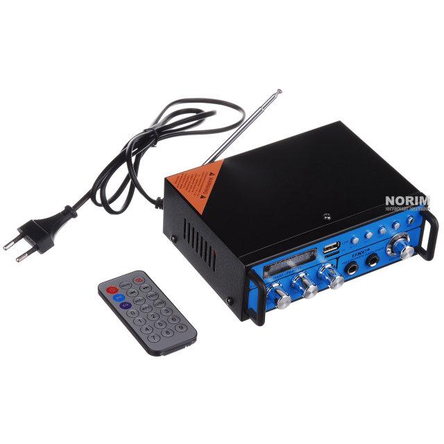 Підсилювач — основний елемент і невіддільна частина вашої звукової системи. Для чистоти та посилення звуку хочеться вибрати якісний і надійний прилад. У цьому вам допоможе Підсилювач UKC SN 666 BT. Корпус його зроблений і металу, має чорний колір, а передня панель у гарному синьому кольорі, що надає такій моделі індивідуальності. До комплекту входить пульт дистанційного керування, за допомогою якого вам буде просто керувати підсилювачем, перебуваючи на відстані від нього.